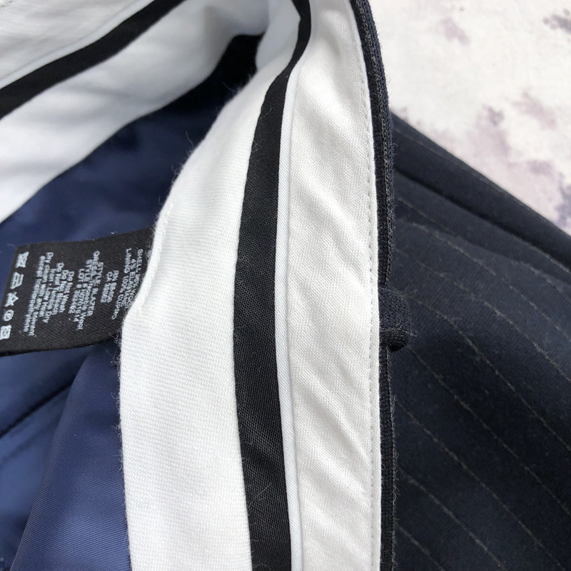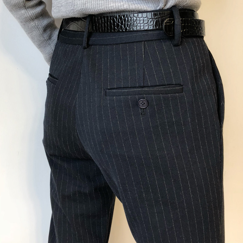 Theorists strongly recommend OL can wear three-quarters wool knit dark striped tapered Western pants smoking pants 1212B1