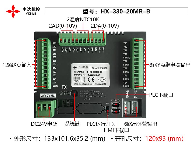 Direct sales Zhongda Youkong plc text All monochrome with buttons ad da ntc fx1s usb download