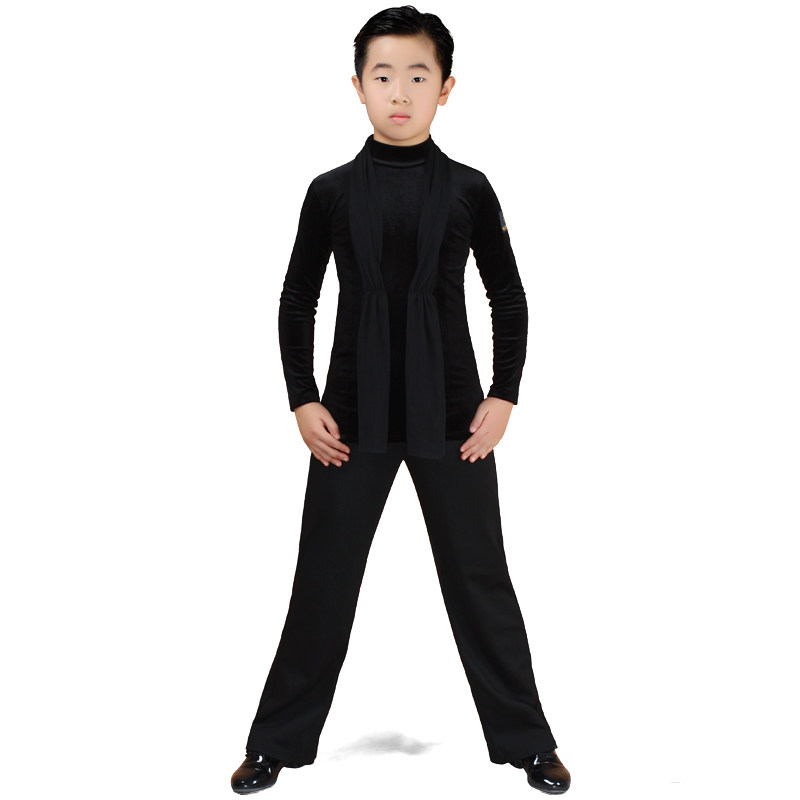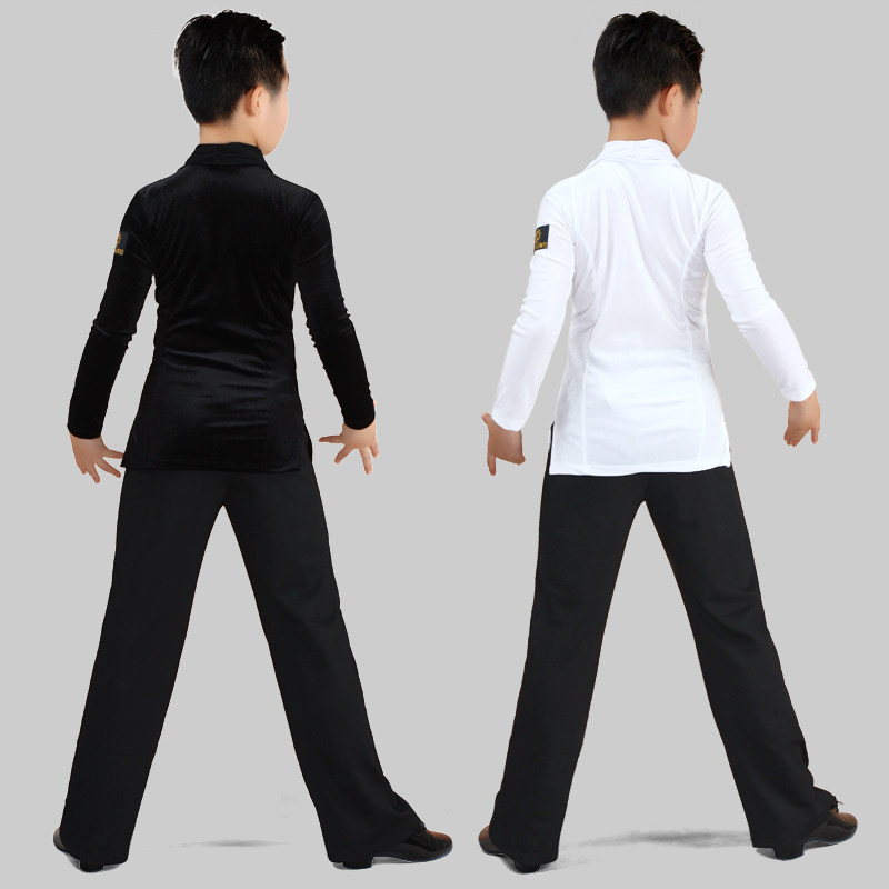 Professional Boy Latin Dance Suit Children Autumn Winter Gold Velvet Dancing Practice Costume Black White Boy Dance Play Out
