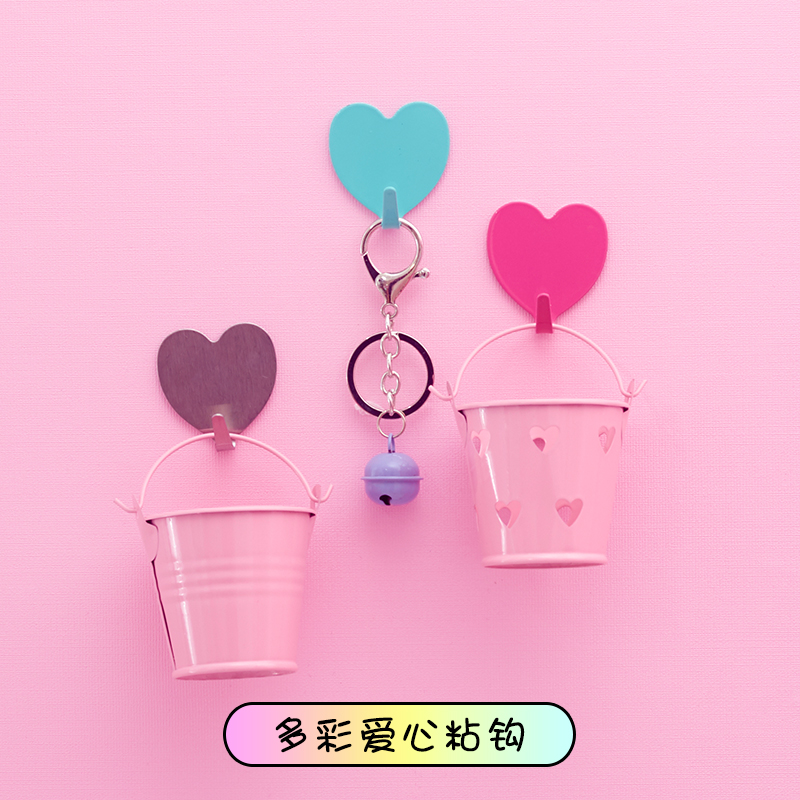 Noo Love Teenage Girl Hearts Pink Loving Adhesive Hooks Wall Wall-mounted Decoration Sticky Hook Free of Nails Powerful