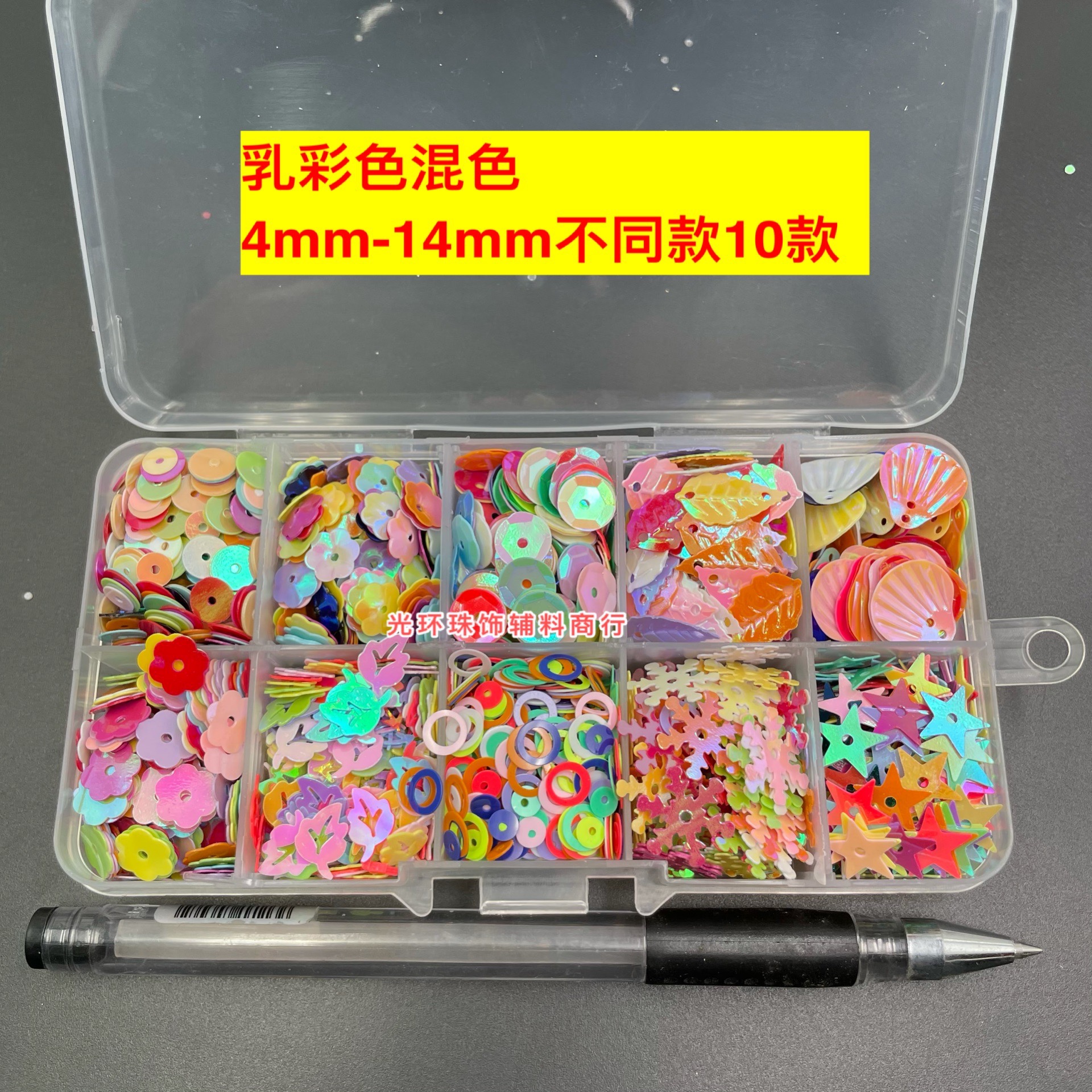 10 grams of milk color mixed color paragraph 15 g 8mm recessed section 15 gg 6mm recessed section 10 Ggold luster white mix 8 g mid hole pentagram 10 g 8mm matt recessed flower 10 gg 6mm recessed flower 1