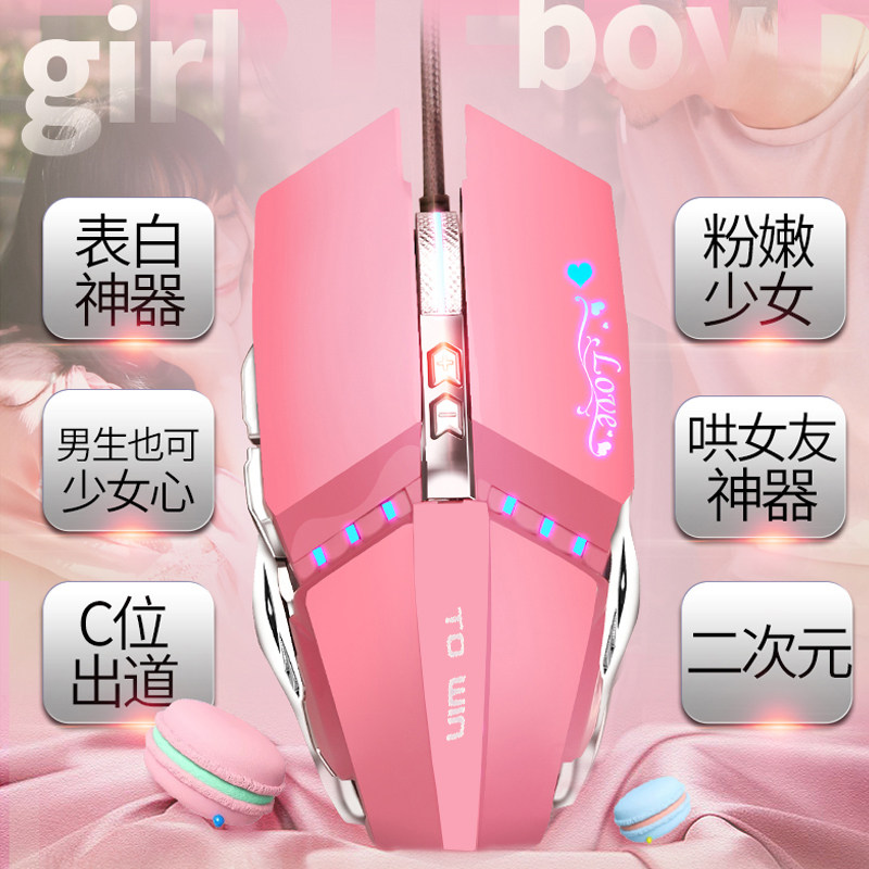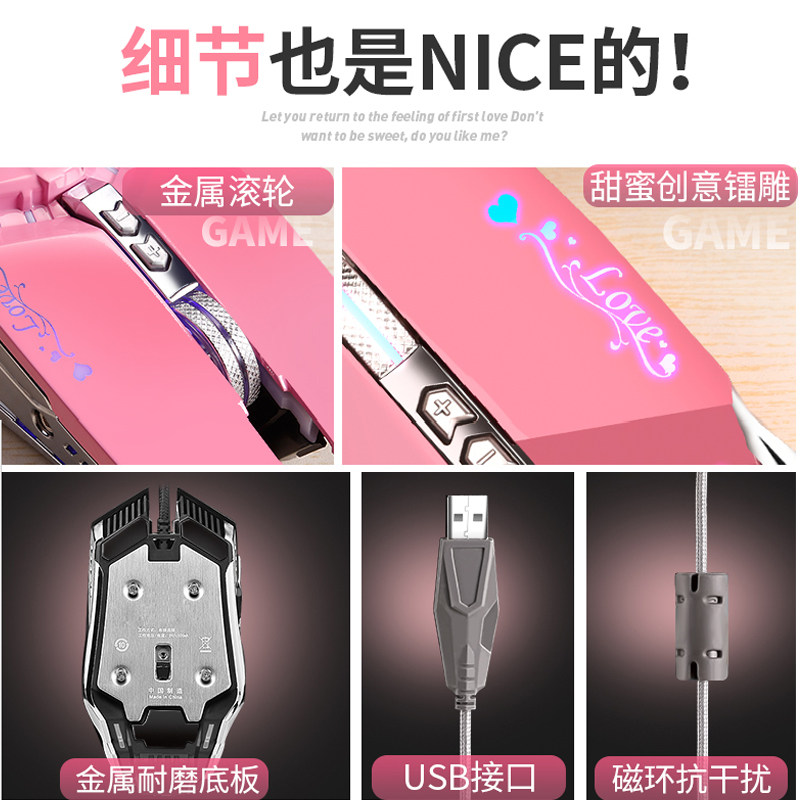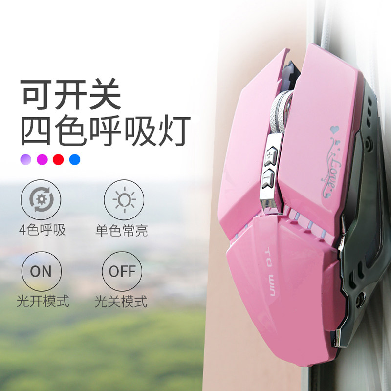 Powder Romantic Creative Luminous Wired Game Slip Rat Silver Left & Right Key Mute Luminous Wired Game Slip Rat Pink Romantic Creative Luminous Wired Game Slip Rat Pink Glowing Wired Game Slip Rat