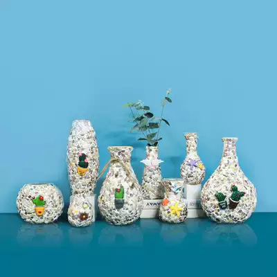 Golden lake blue emerald green violet flared shell vase oblate vase small flat round shell vase medium flat round vase large cylindrical vase trumpet vase large cone glass vase pear glass vase