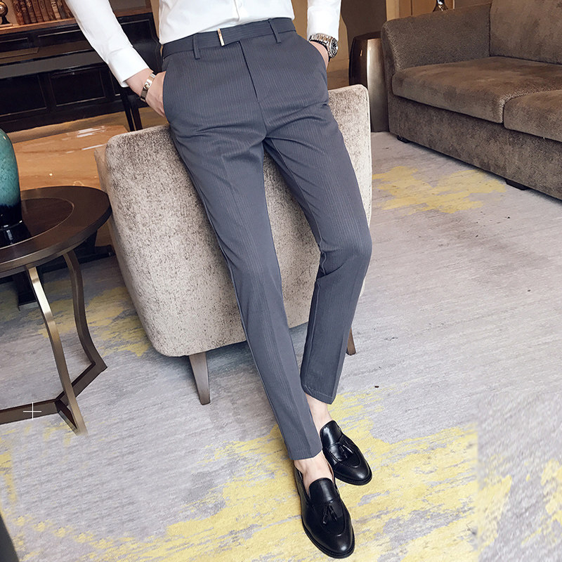 Men's trousers summer 2023 new Korean version trendy slim feet with a sense of nine points business formal casual trousers