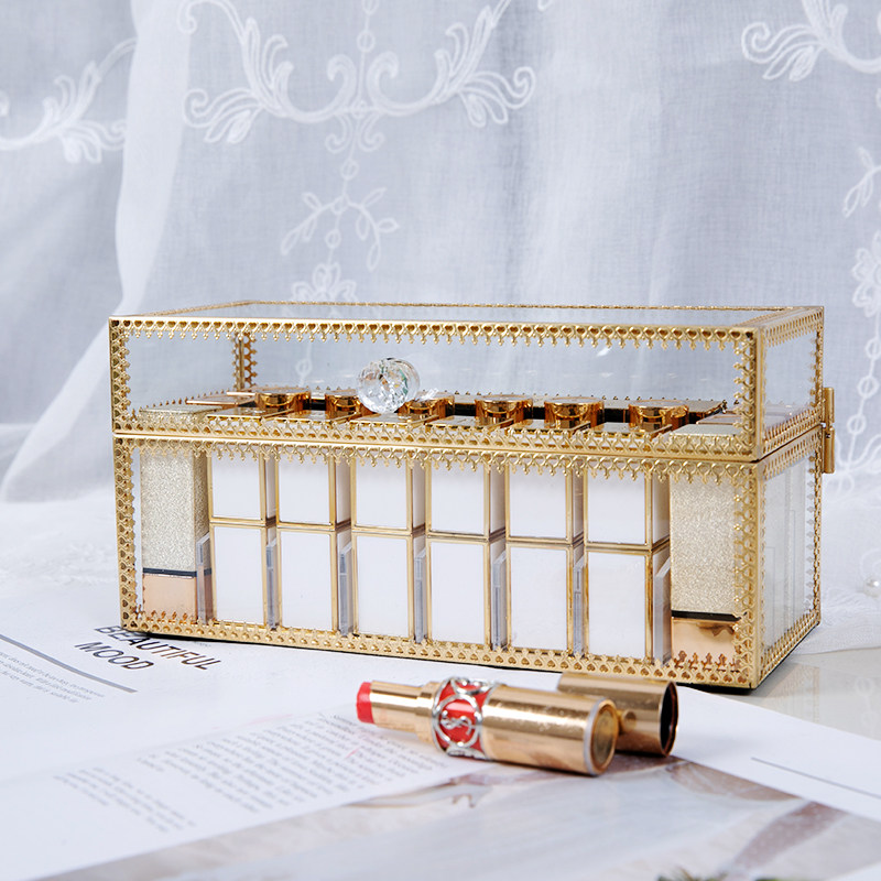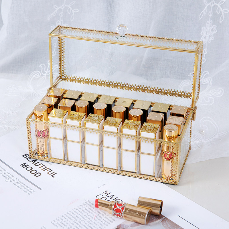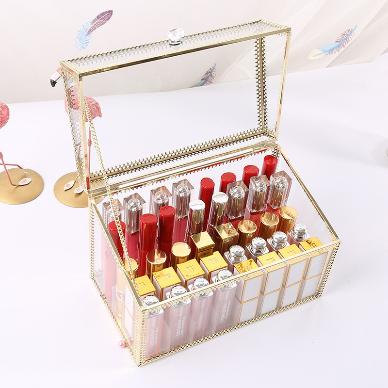 Glass dust-proof lipstick storage box net red with lid cosmetic lip glaze lipstick display stand light luxury desktop shelf