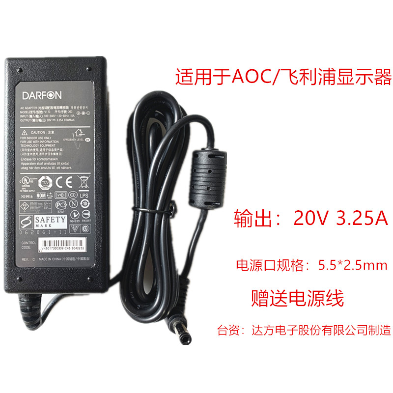 New AOC Philips 276E8V LCD power supply adapter ADPC2065 20V 3 25A