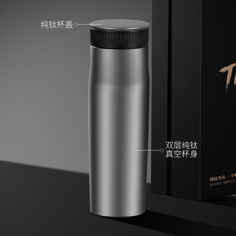 Pure titanium thermos cup men's and women's titanium water cup men's high-end double-layer high-end gift business large-capacity tea cup customization