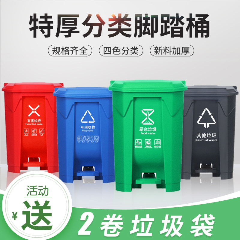 Extra-thick foot-stepped garbage sorting trash can with cover large commercial household pedal kitchen waste bin school