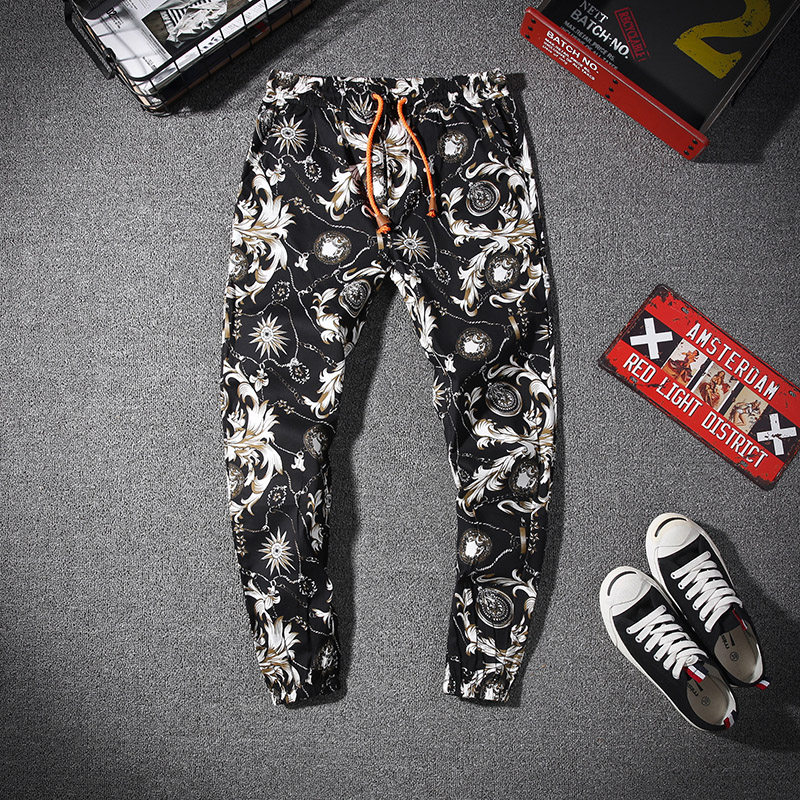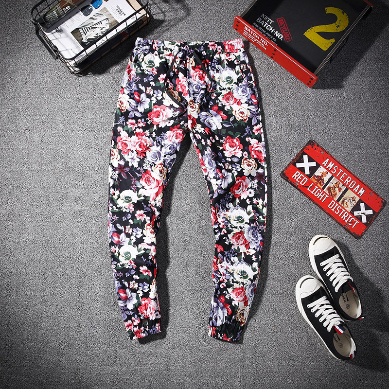 2022 autumn new rose flower large size harem pants trend casual pants fat man fat man printed trousers men