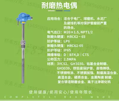 Wear-resistant thermocouple explosion-proof cement plant power plant stainless steel Anhui Tiankang WRN-230NM high temperature flue gas