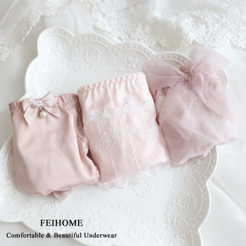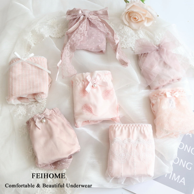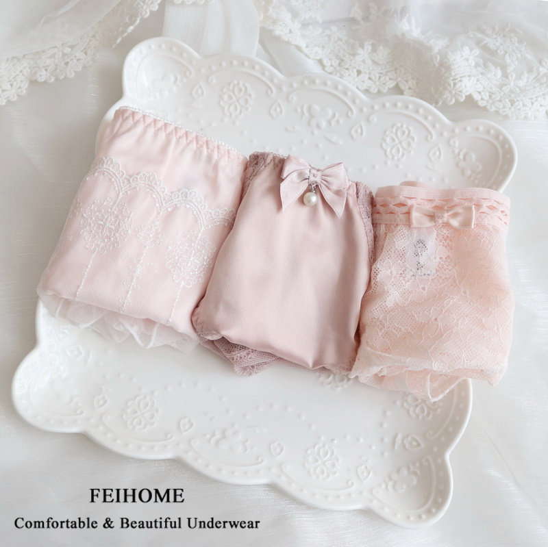 Pink maiden lady middle waist pure cotton lace milk cute lady shorts girls underwear large size