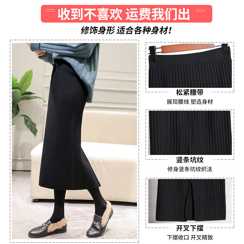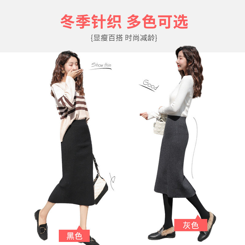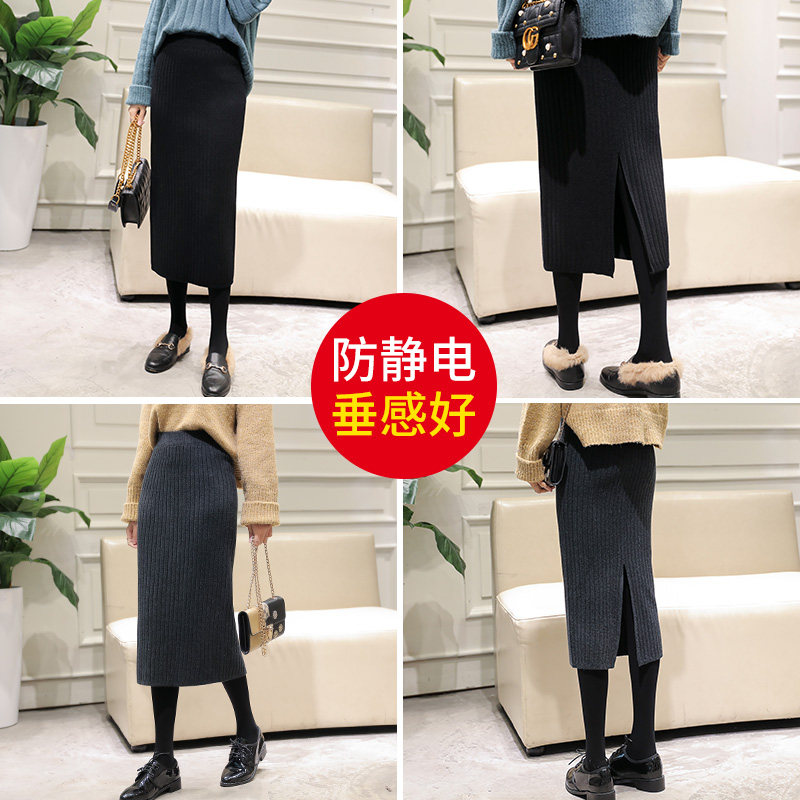 Long skirt Winter skirt Autumn and winter women's long version of wool winter skirt Knitted skirt with sweater Large size high waist hip