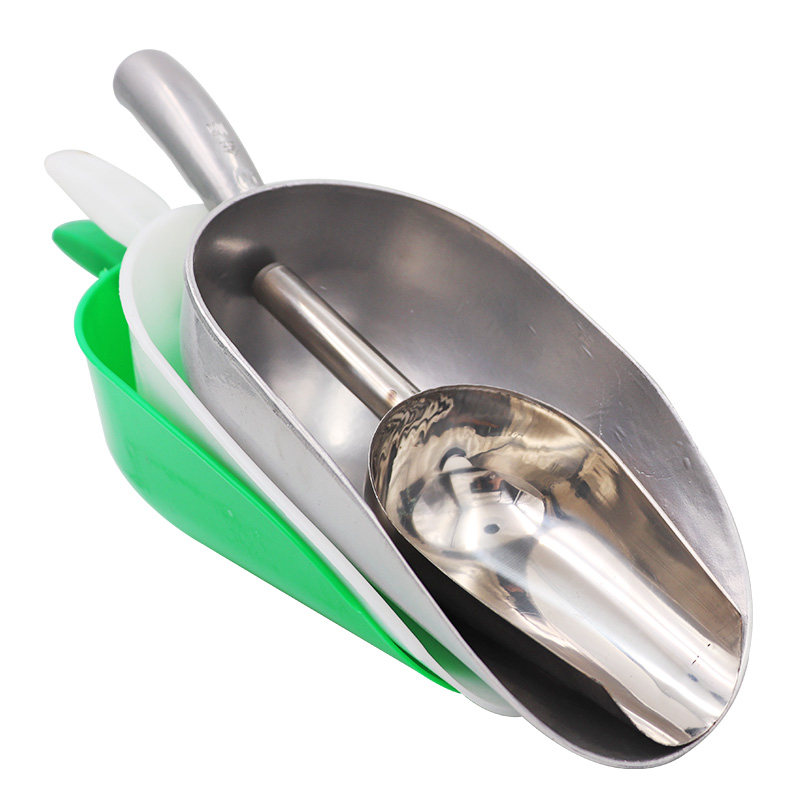 Stainless steel feed shovel long handle material ladle aluminium alloy thickened large charge shovel Chicken Pig Sheep Plus Plastic Material Shovel
