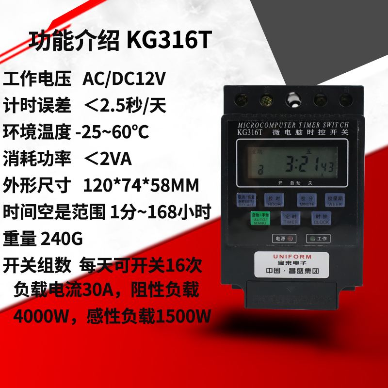 DC12V Microcomputer time control switch KG316T time controller street lamp timer intelligent control switch