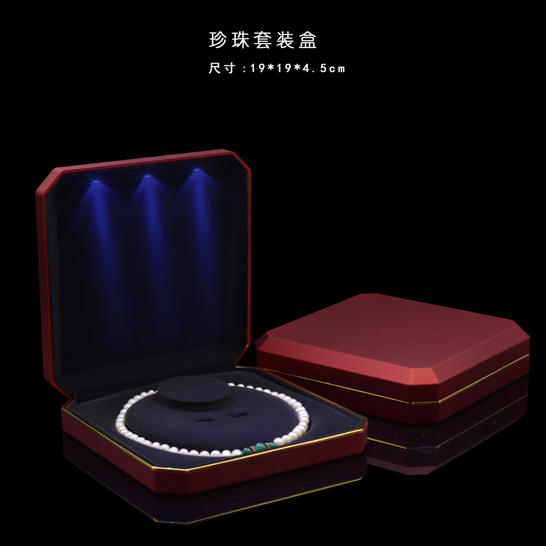 LED luminous pearl necklace high - end box sandwich box jewelry set box can be customized print