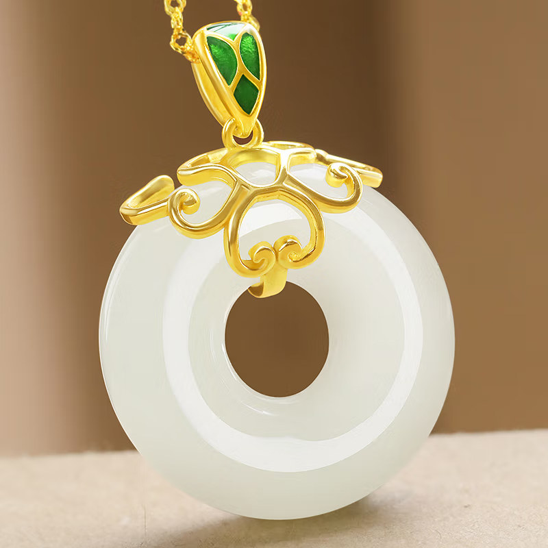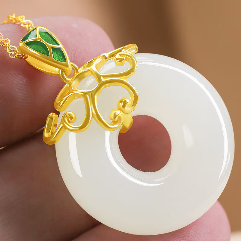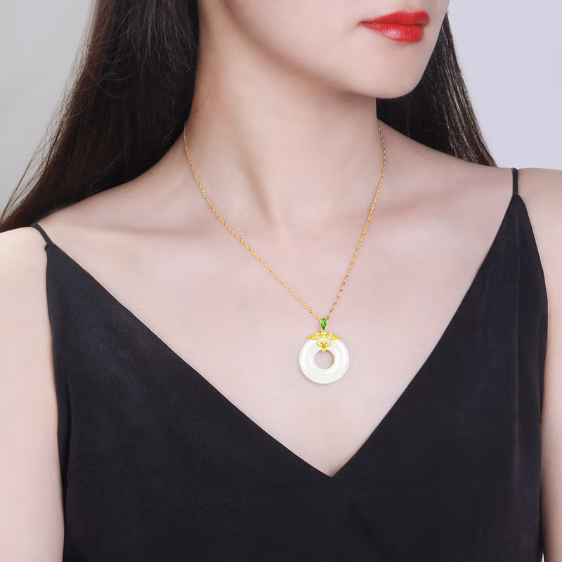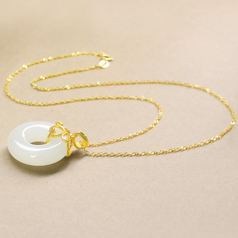 Essence Hetian Jade Gold Inlaid Jade Peace Buckle Pendant Women's Jade Necklace 925 Sterling Silver Rose Gold Plated Pendant