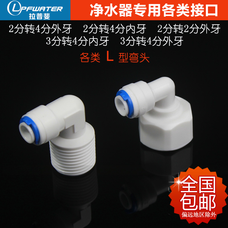 Water purifier 2 points PE water pipeline quick-insertion turn 144333 points 2 points threaded inner and outer wire teeth L-shaped elbow fittings