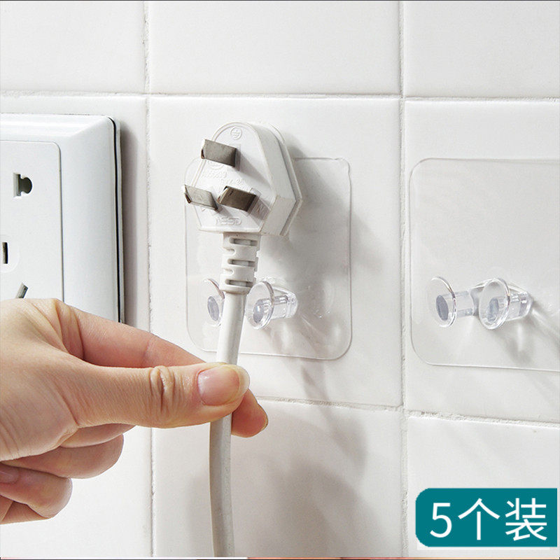 5 plug hooks transparent power supply viscose storage sticky hook wire plug paste bracket hook strong load-bearing
