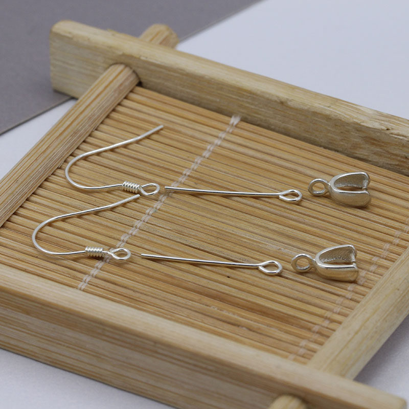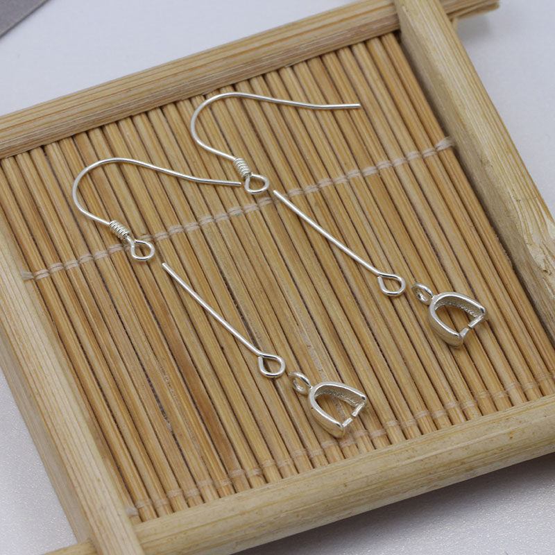 S925 silver ear hook pendant clip ear pin earrings Ornaments Jade Strap Head Ear Hook Diy Accessories Emerald Crystal Snap Head