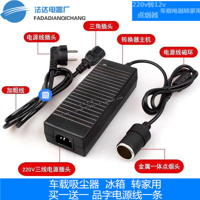 220V Turns 12V Car Load Cleaner Fridge Cheer Home Power Conversion Point Cigar Lighter Socket Transformer