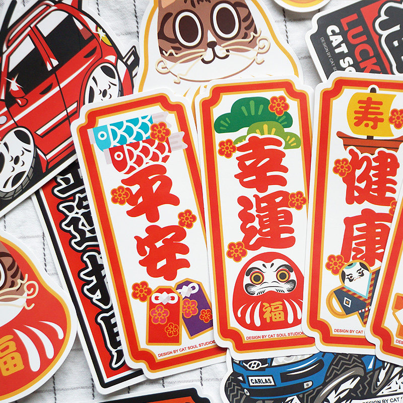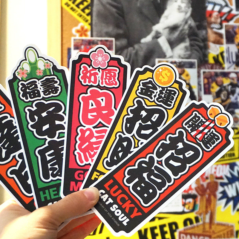 The Chaise Cat Cartoon China Wind Sticker Pray Blessing for the Auspicious Items Suitcase Computer Wall Decoration Creativity Waterproof
