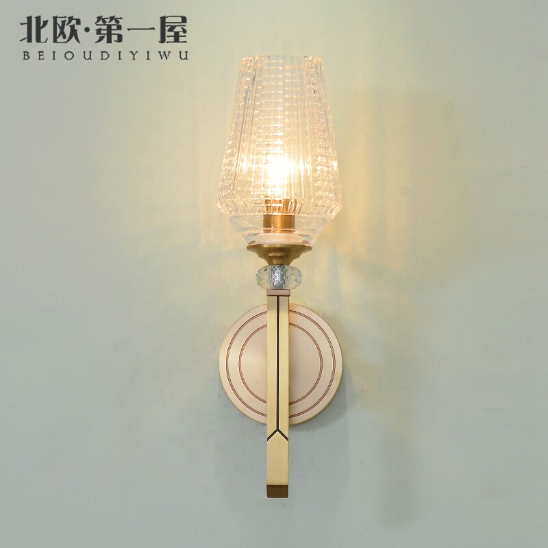 Nordic All-copper Living Room Wall Lamp Modern Minimalist Personality Creative Bedroom Bedside Rear Modern Light Lavish Wall Lamp Full Copper Lamp