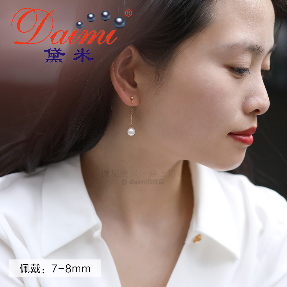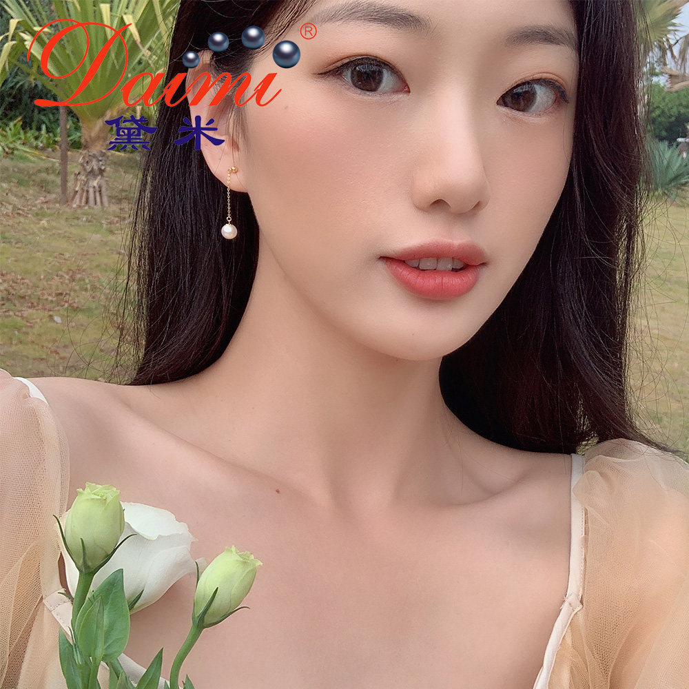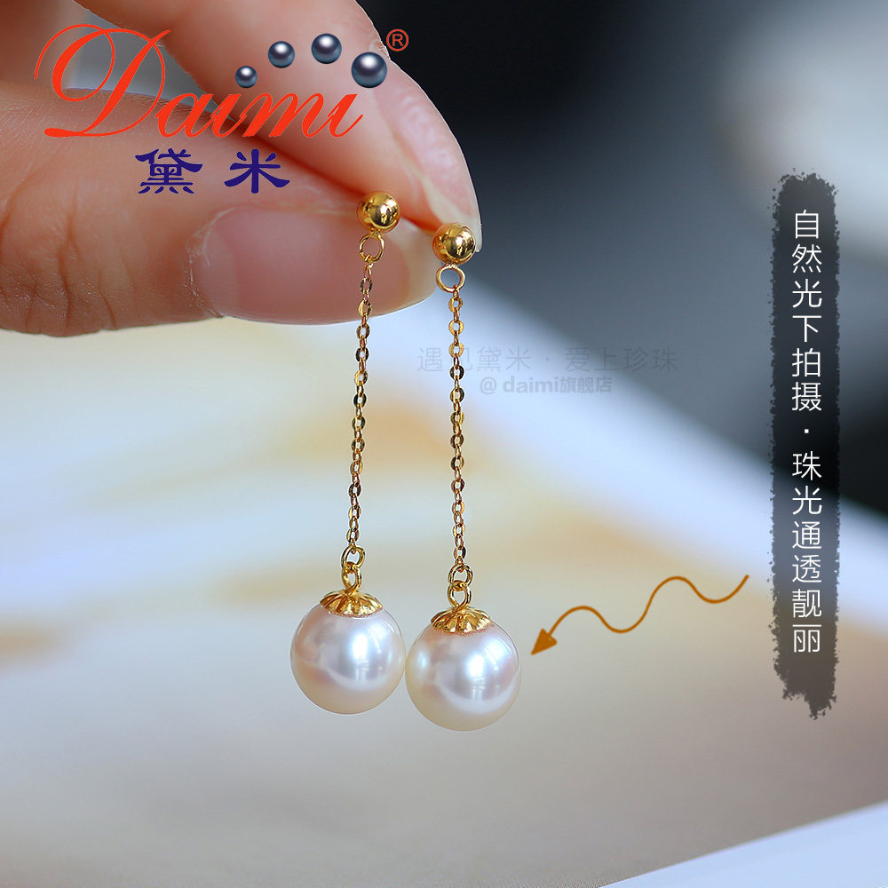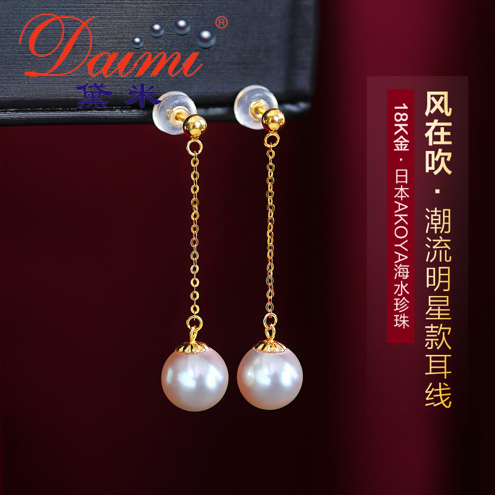 Dime Xianling G18k Gold Japan akoya Seawater Pearl Earrings Wind in the Blown Ear's Ear Dressing Woman