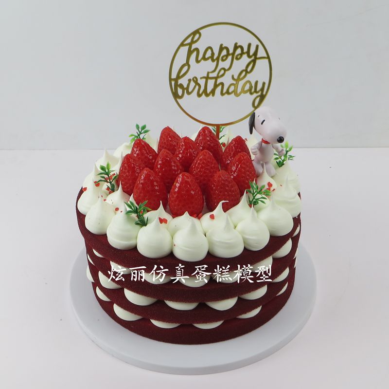 The new cake model model in the store is new. The dazzling simulation cake model. The shopkeeper pushes the new product model