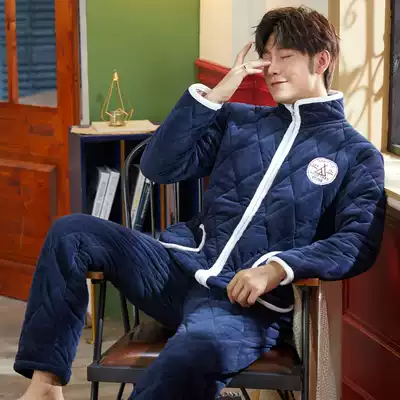 Men's pajamas winter thickened velvet coral velvet winter flannel warm cotton autumn winter zipper home wear