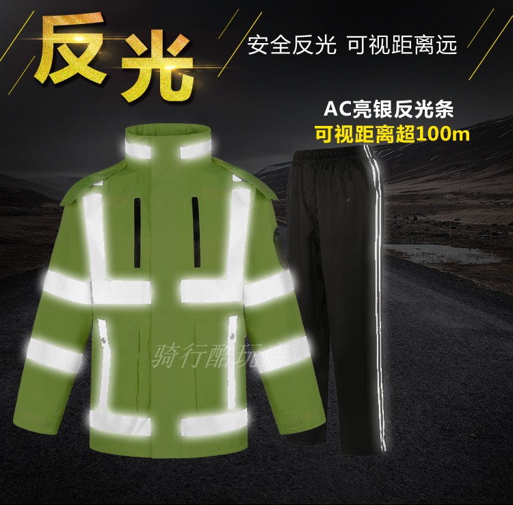 Iron riding raincoat set composite fluorescent green traffic men's and women split waterproof breathable reflective motorcycle riding raincoat