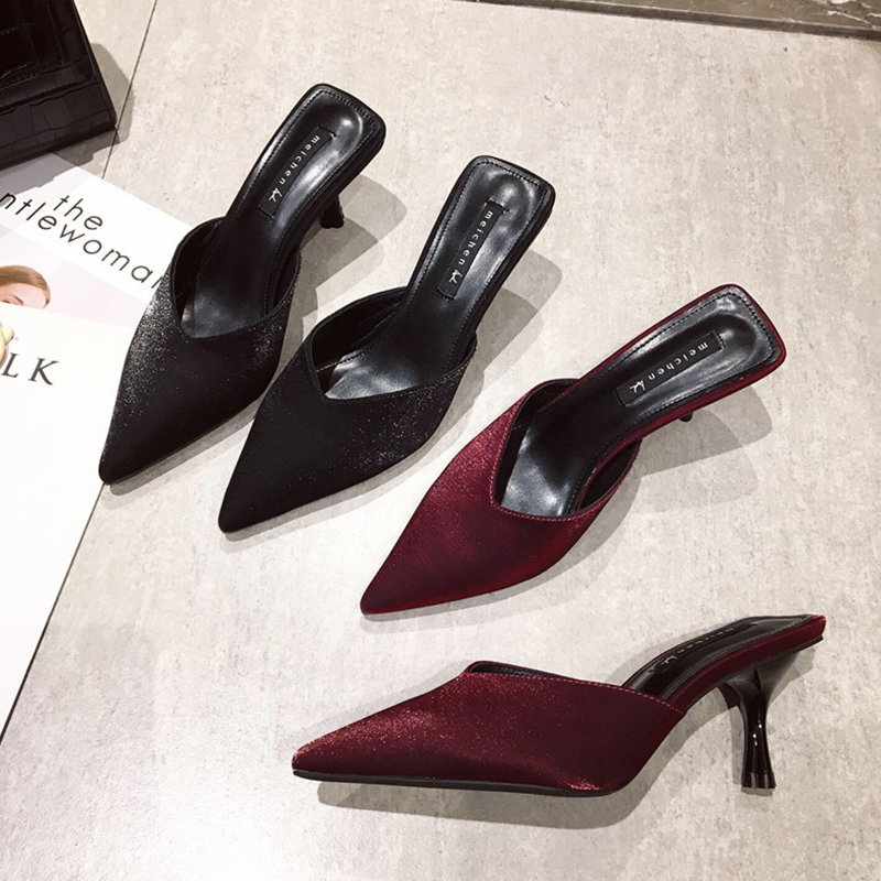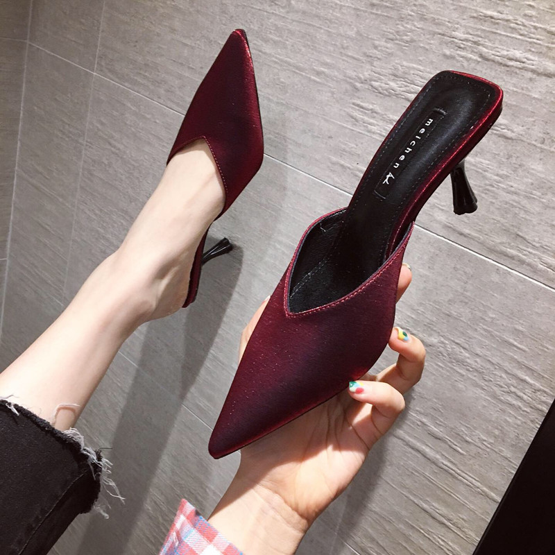 High heel shoes female fine heel tip Baotou Half cool slippers 2022 The new Korean version wears a cool tug girl little fresher