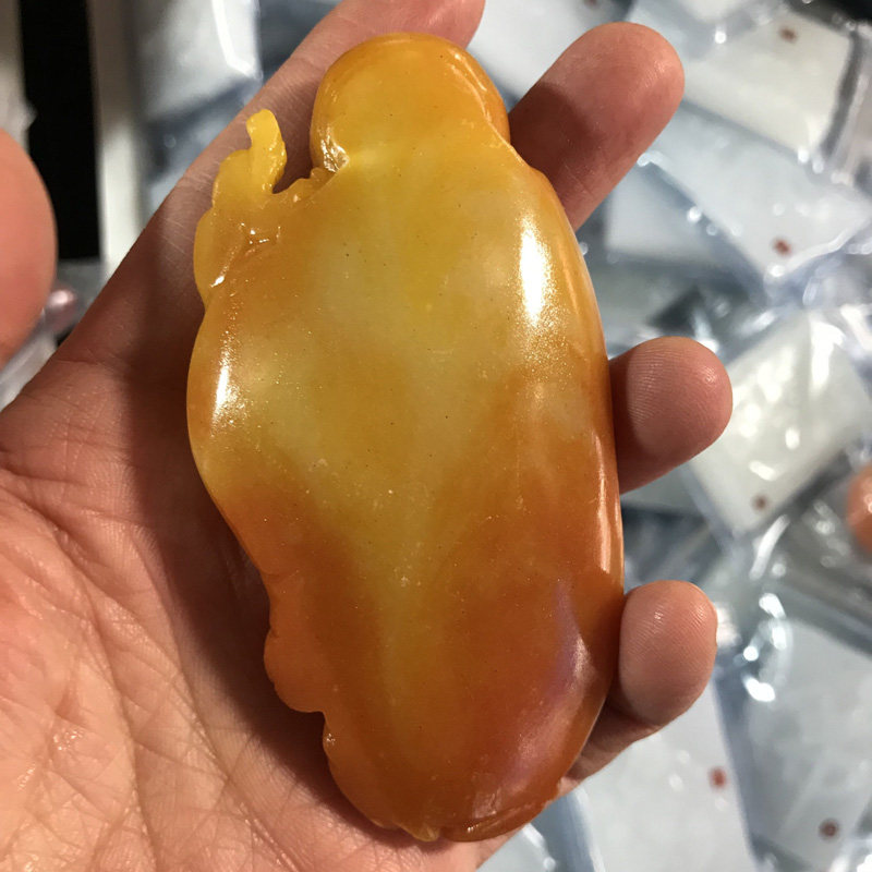 Yunnan Huanglong jade original stone shouxing handle piece imitation field topaz Fulu shou hand play piece gift men and women to play piece