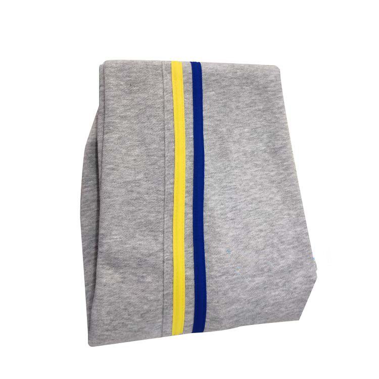 Primary and secondary students plus winter gray school uniform with yellow side blue edge pure cotton spring and autumn sports pants