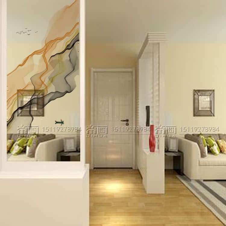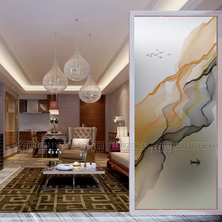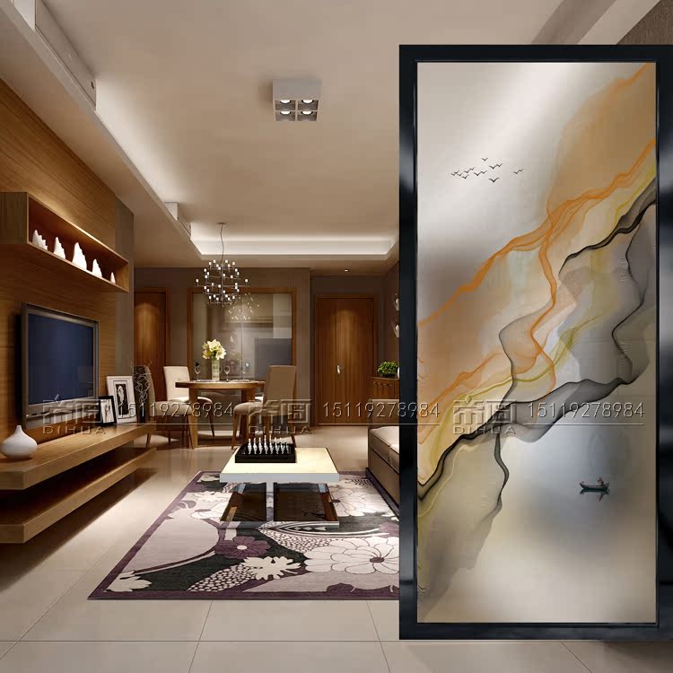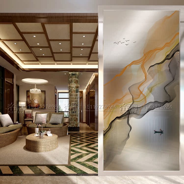 Modern Minimalist Art Glass Starter Genguan Living Room Screen Partition Living Room Aisle TV Background Wall Water Ink Painting