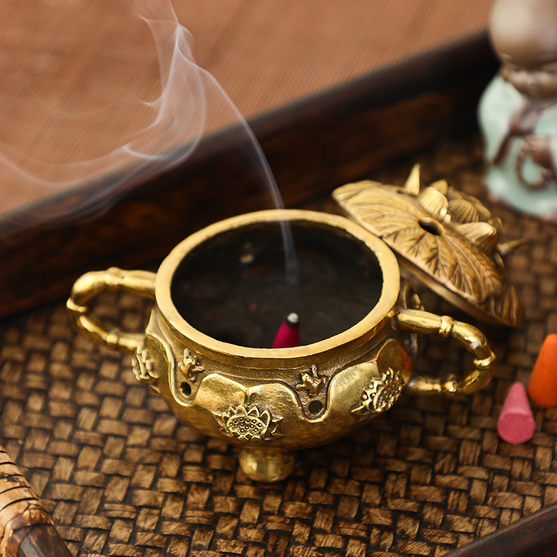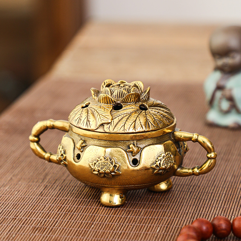 Yili antique creative brass lotus incense burner home living room Buddhist hall Zen ornaments tower incense incense burner
