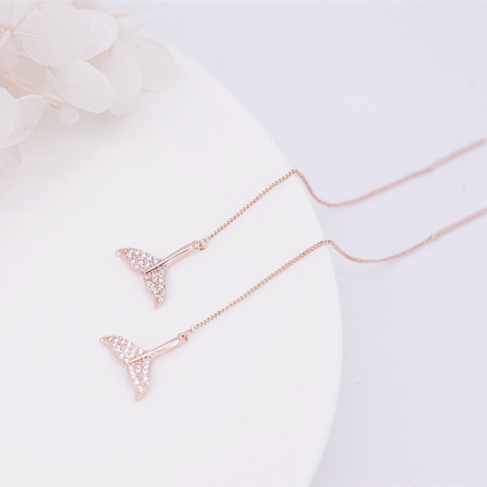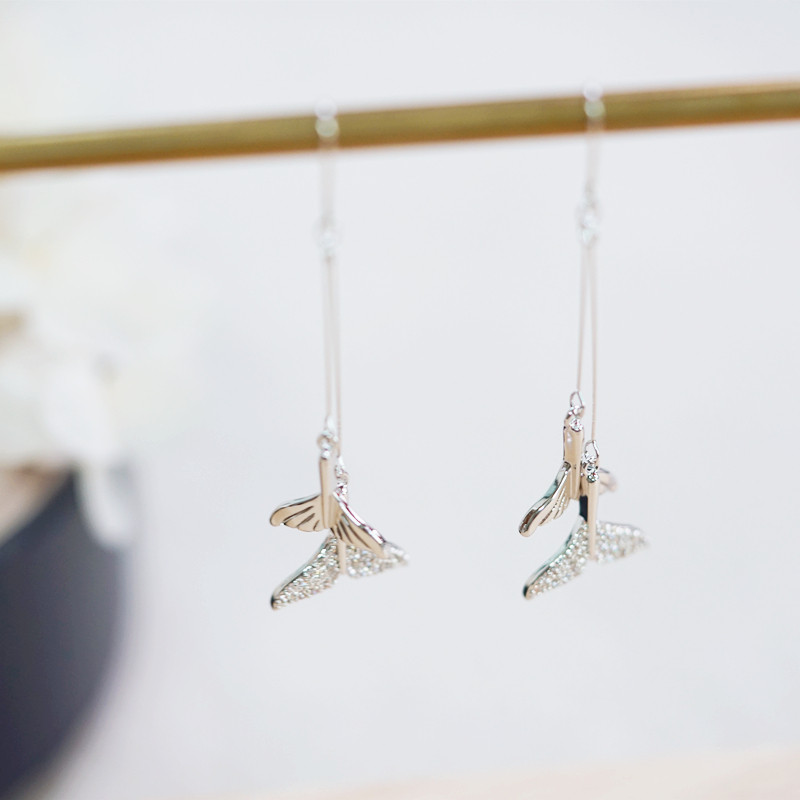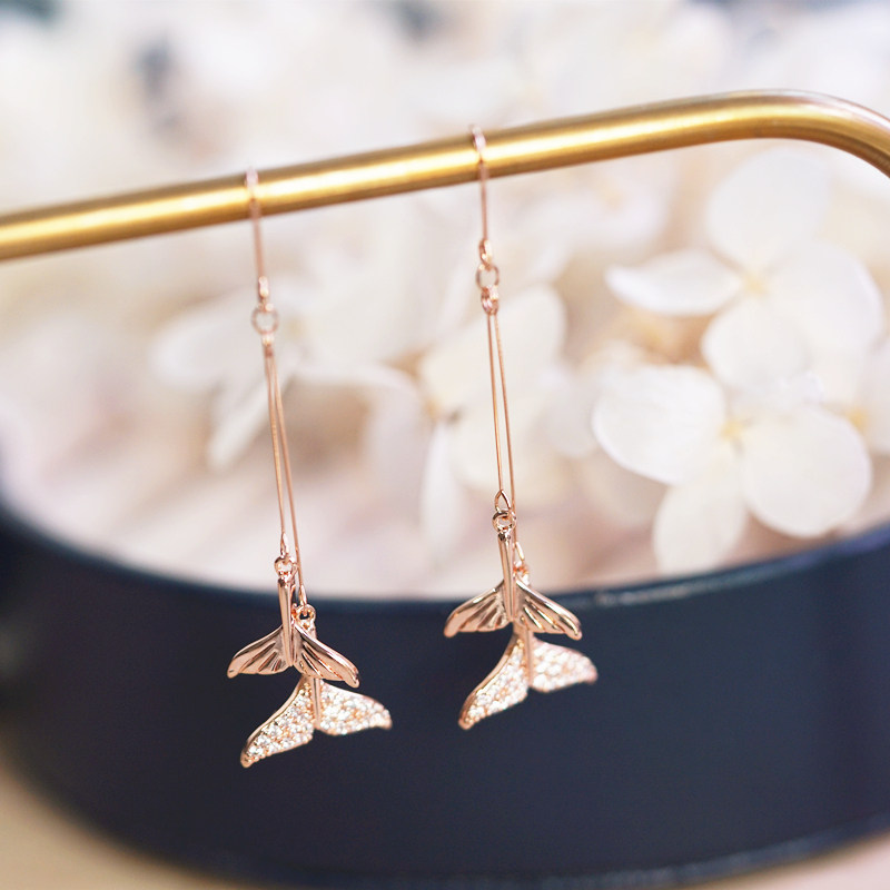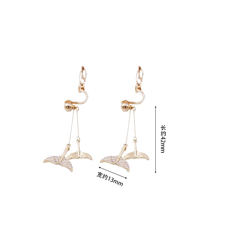 Minimalist wind with gold plated without earbuds ear clips Mermaid tail earrings inlaid with super-fairy hanging pendant teenage girl mind