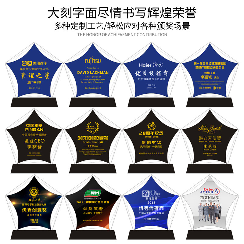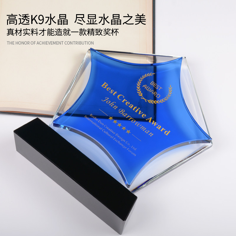 Crystal trophy custom creative fantasy five-pointed star authorization card Medal custom veterans memorial veterans party gifts