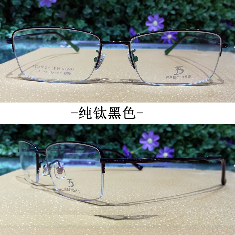 Flanders Pure Titanium Half Frame Glass Frame 11183 Black Gun - colored myopia frame with lenses please contact customer service
