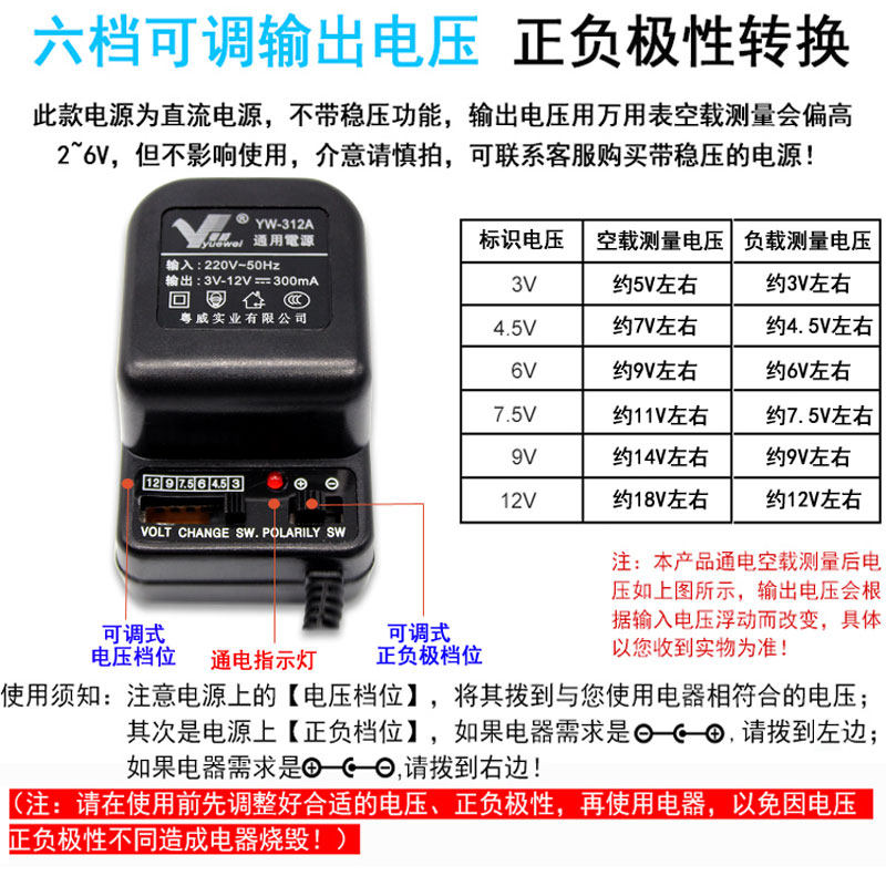 Adjustable voltage DC3-12V power adapter Desheng 3 volt radio transformer 6V repeater 9V power cord