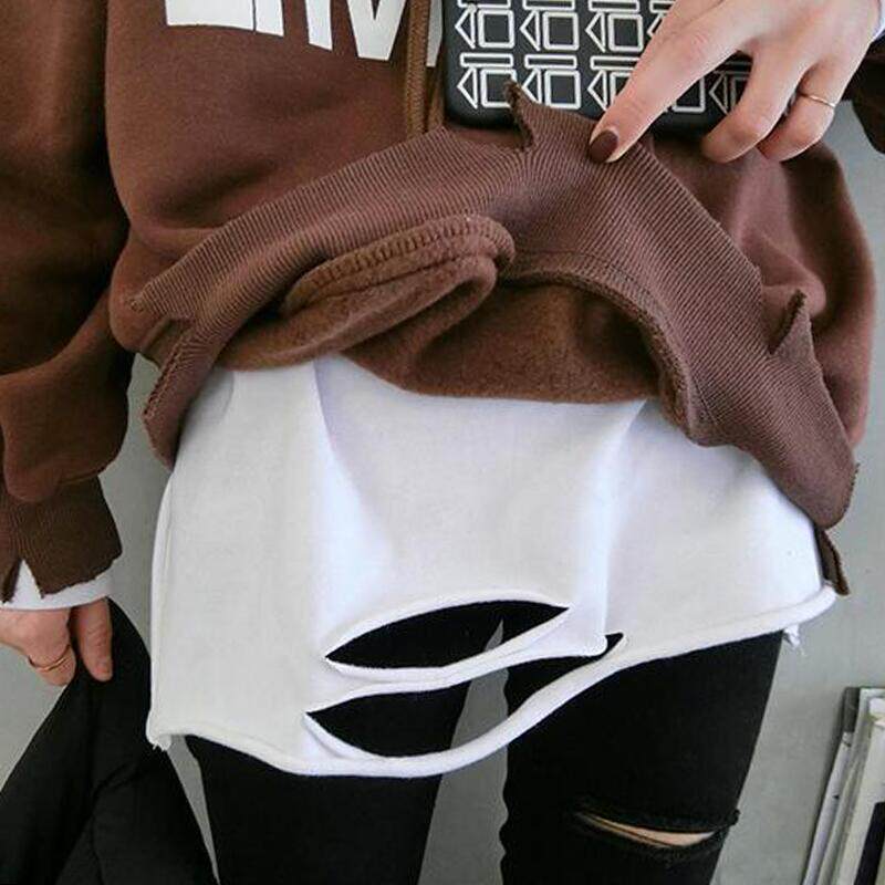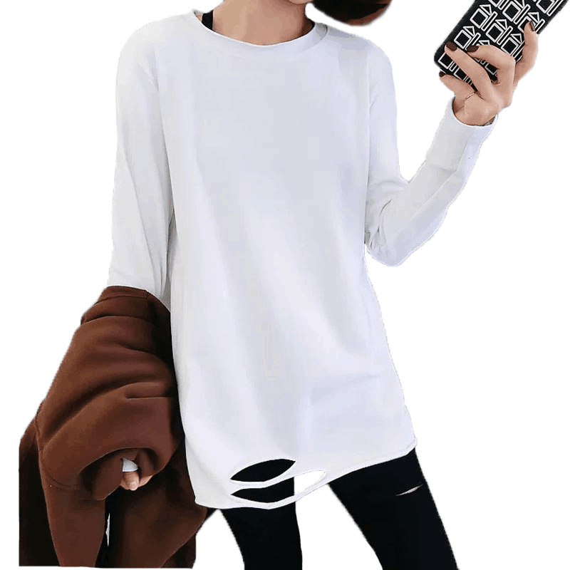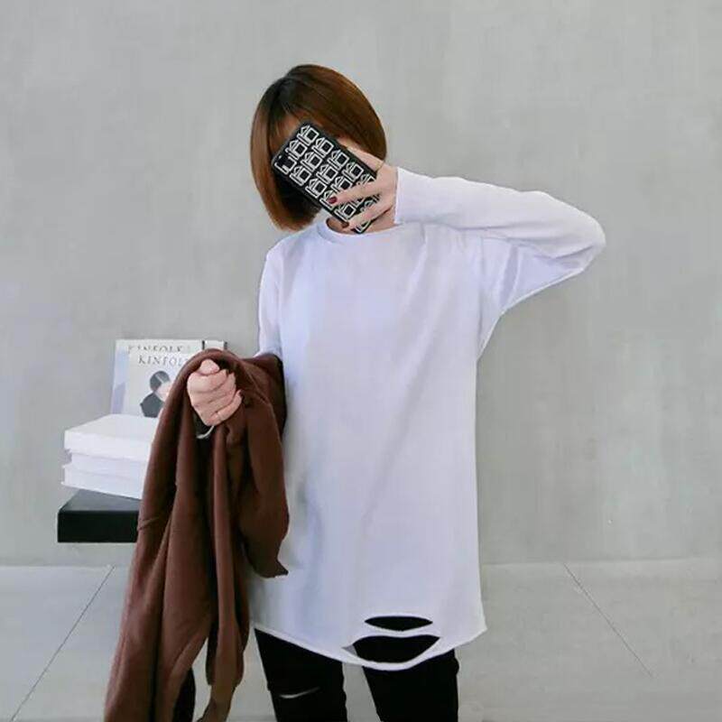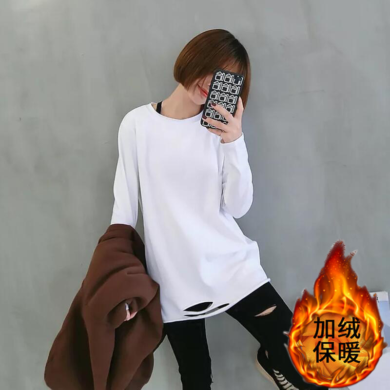 South Korea 2021 spring cotton long-sleeved inside the hole T-shirt women's long version of the white velvet base shirt top tide