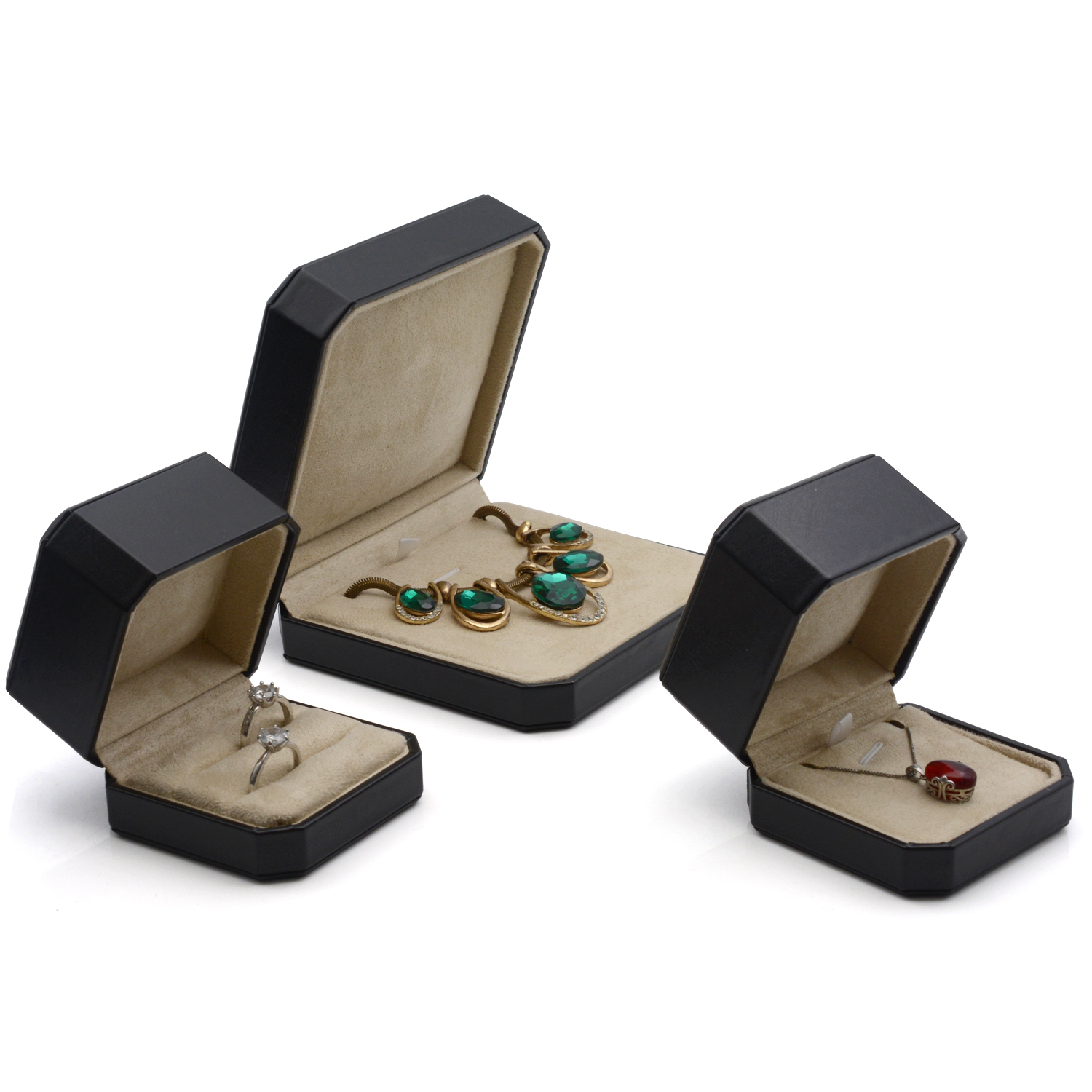 Single ring box (octagonal black PU skin) to ring box (octagonal black PU skin) pendant box (octagonal black PU skin) large pendant box (octagonal black PU skin) bracelet box (octagonal black PU skin)