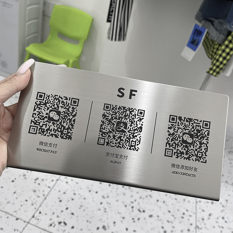 Two-dimensional code display card receiving card stainless steel standing card payment card payment code cashier card receiving code table customization