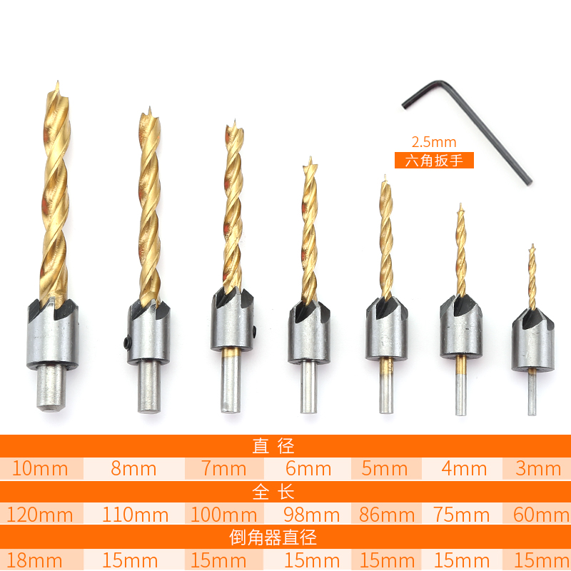 Countersink drill bit woodworking punching ladder chamfer countersunk hole drill guide hole screw wood with extended multi-function countersunk drill