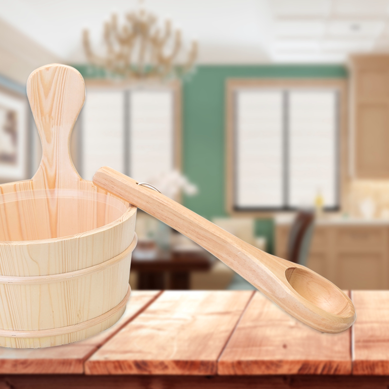 Sauna Room Small Wooden Barrel Wooden Spoon Sauna Stove Watering Wood Basin Long Spoon Sweat Steamed Hand Wood Barrel Dry Steam Water Accessories-Taobao