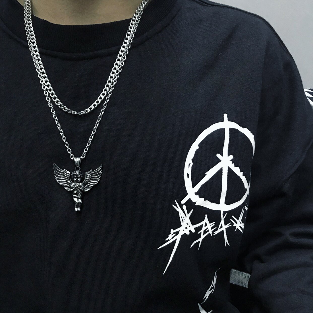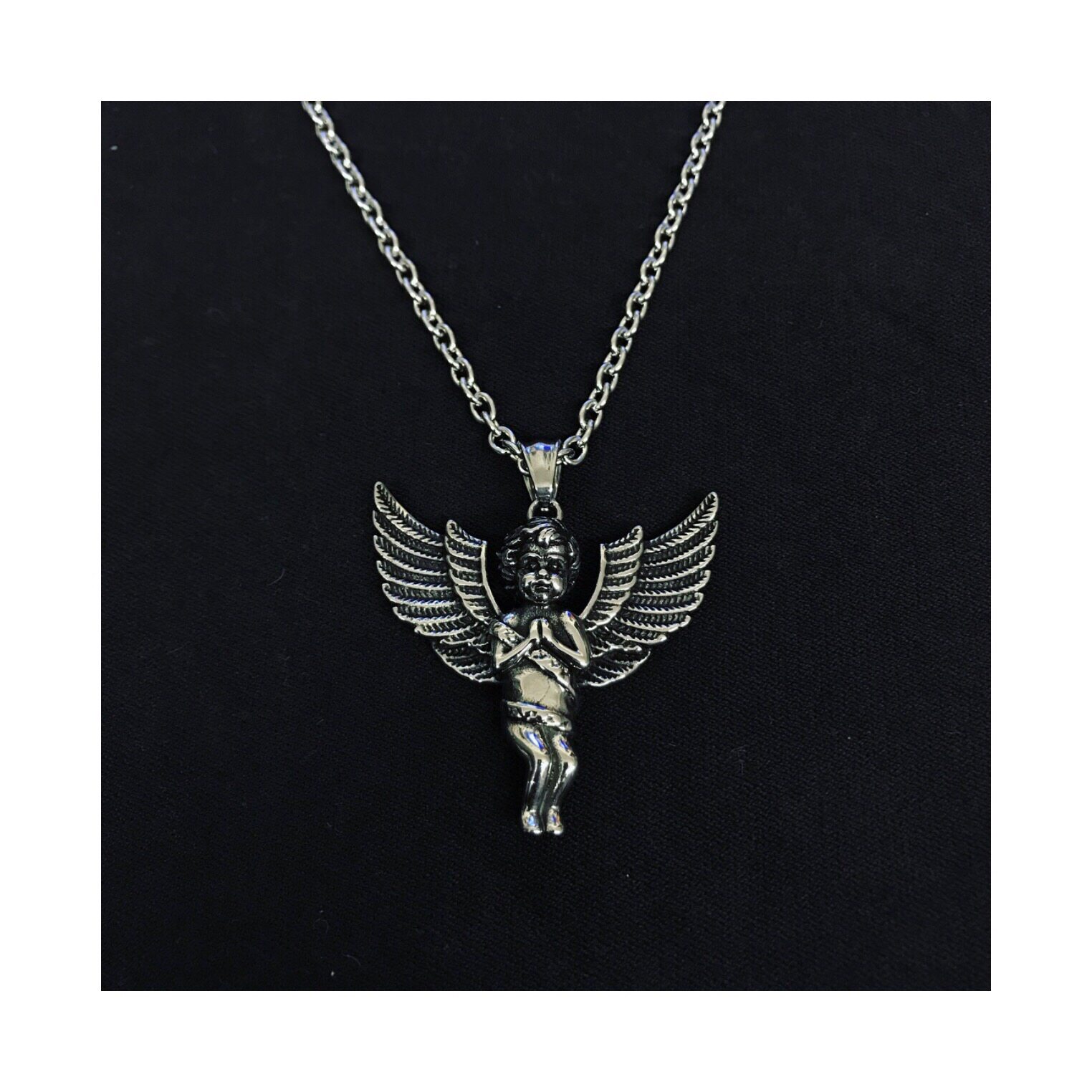 Tide brand retro personality silver angel necklace cupid wings pendant men and women couple sweater chain titanium steel jewelry
