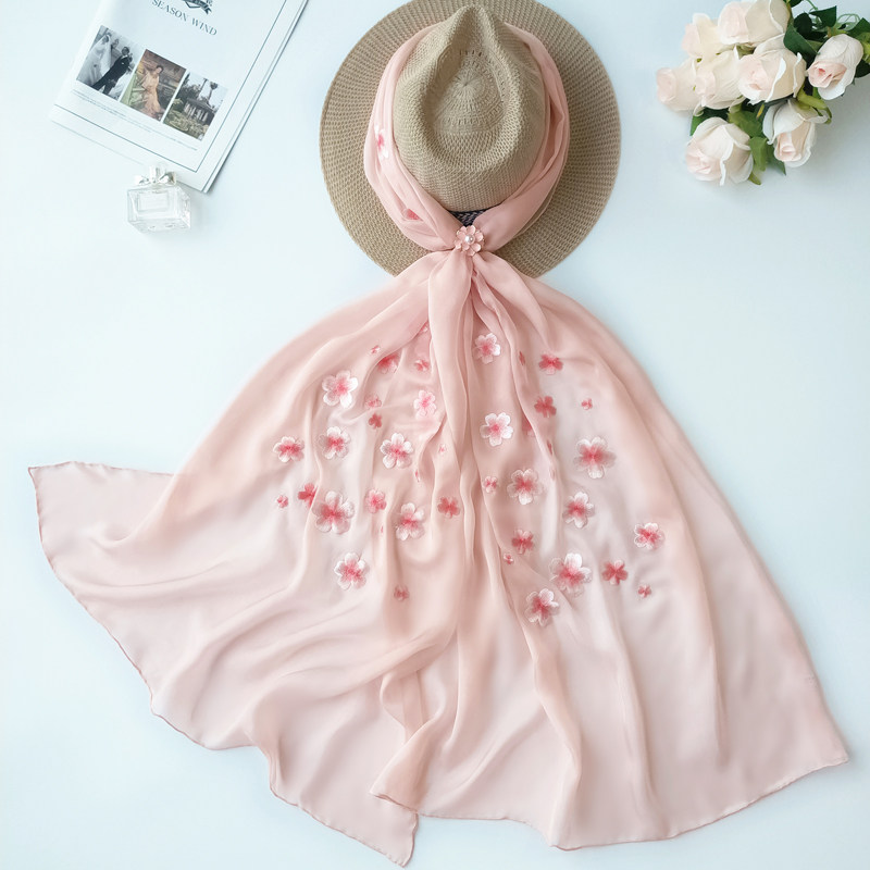 National style high-end embroidered silk scarf Su embroidery Mulberry silk scarf embroidery Hangzhou silk sunscreen shawl gauze towel