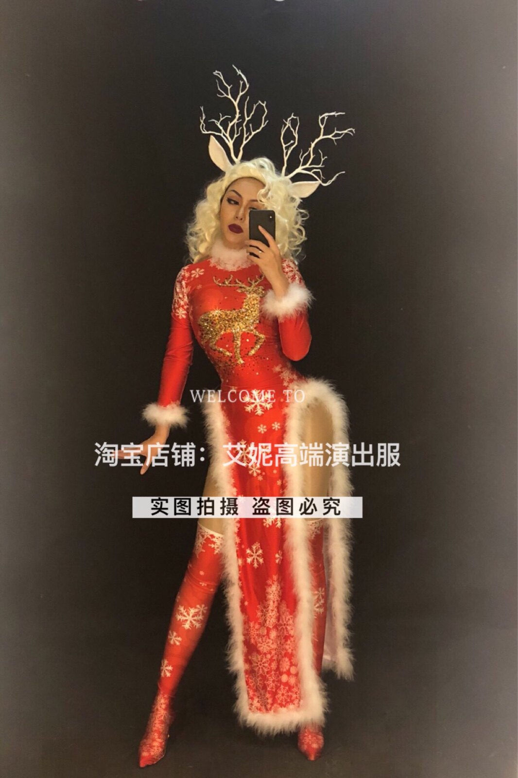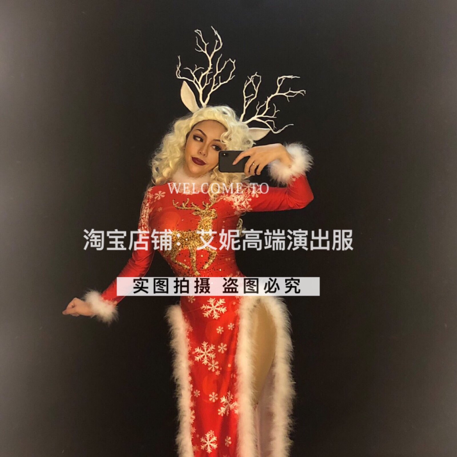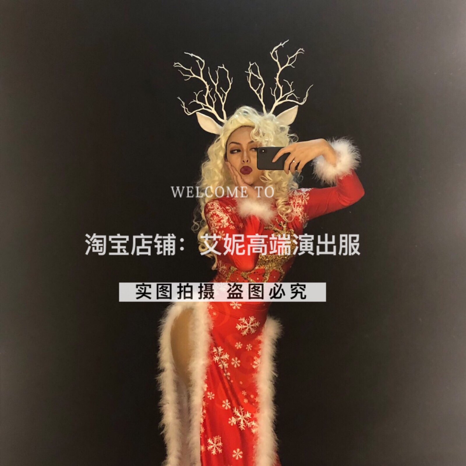 TT nightclub bar singer djds dance team gogo Christmas snowflake deer cheongsam style split costume