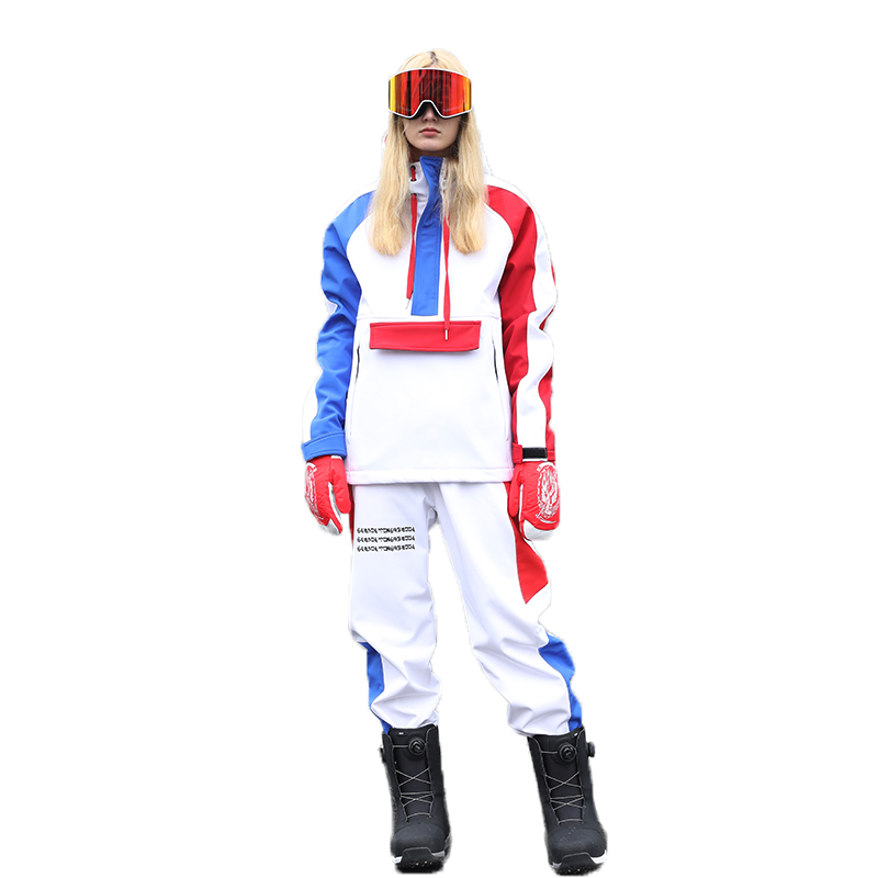 DOOREK's new college-style ski suit blue, white and red men's and women's waterproof plus velvet ski top pants cover