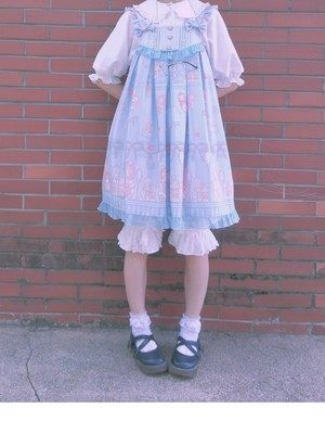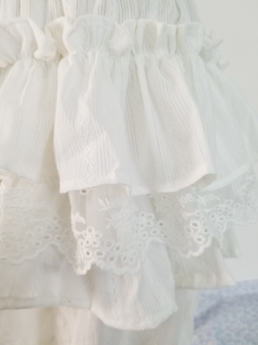 (Wang Yan with summer) Long version of dark veins pure cotton multilayer lamp cage pants small pennity inner lap pants Lolita hit bottom