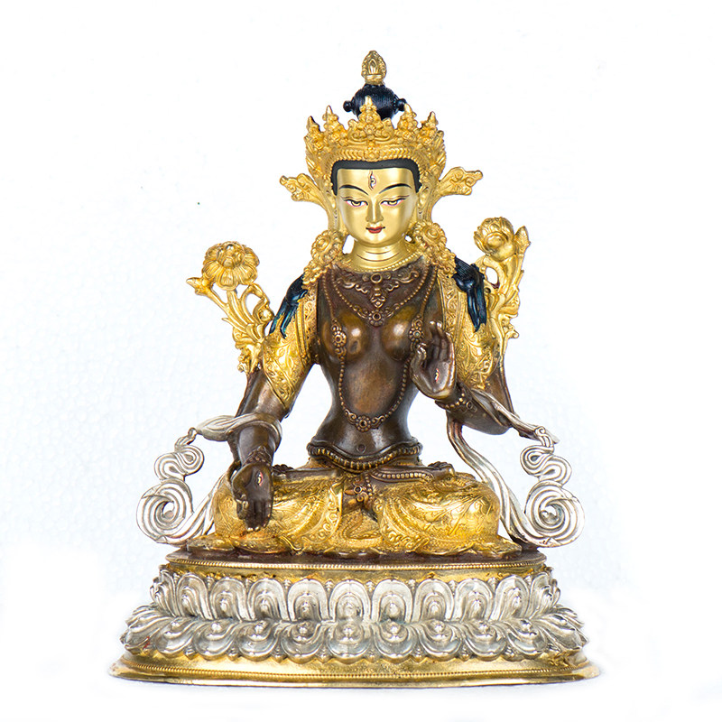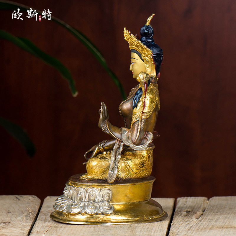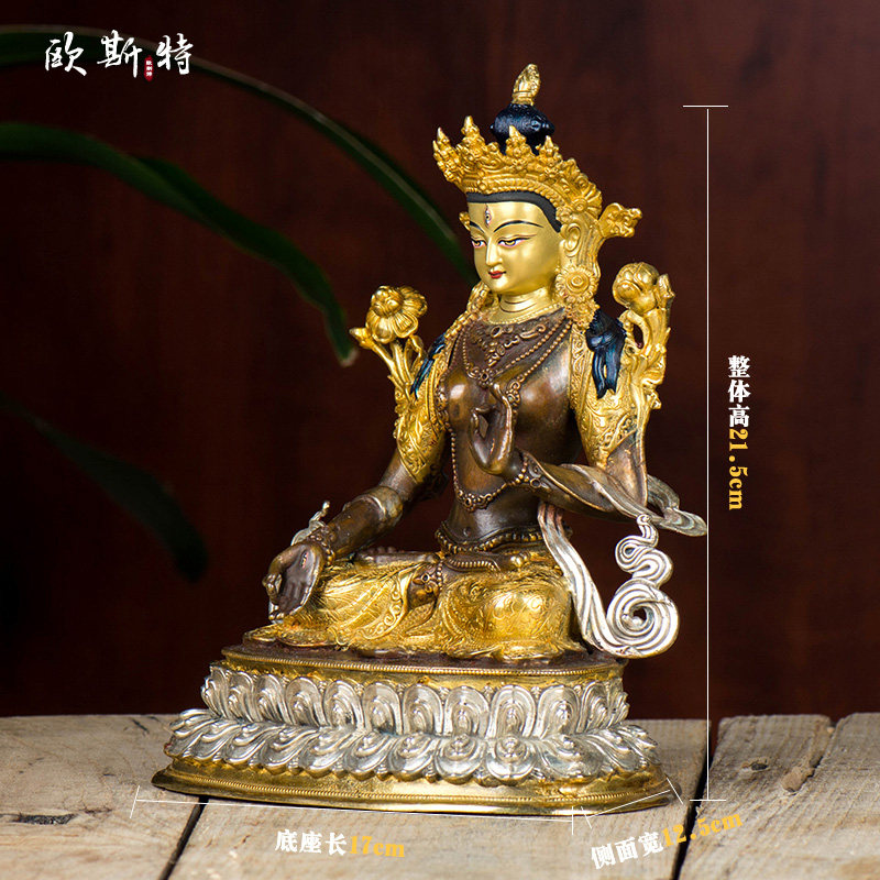Oster White Tara bronze statue Chinese-style home living room copper gold-plated silver-plated 7-inch decorative ornaments double lotus base